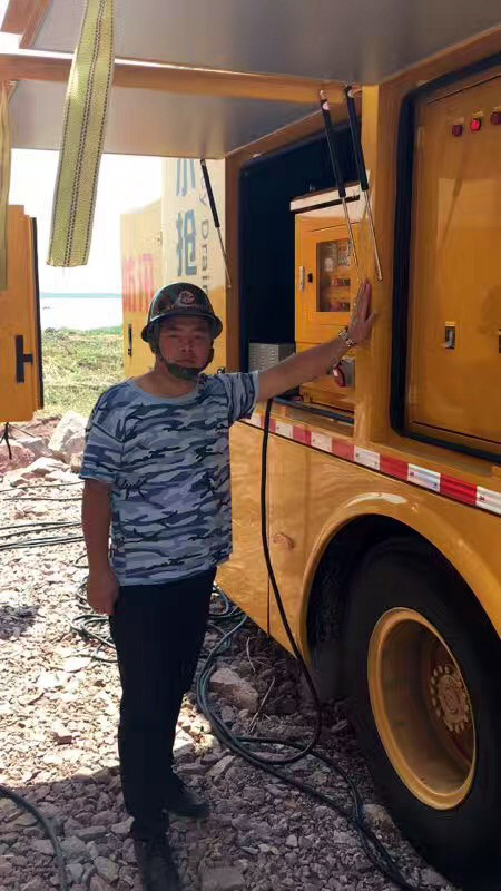 手摸著我們亞太自己生產(chǎn)的防洪搶險(xiǎn)泵車,心里踏實(shí)!只是,戴了帽子就不帥了吧!