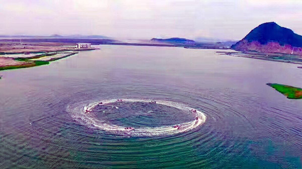 與美景交相輝映的,是漂浮在水面的那一抹抹橙色!對,與之相連的是就是我們的防洪搶險(xiǎn)泵!